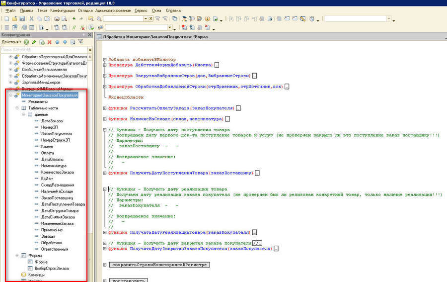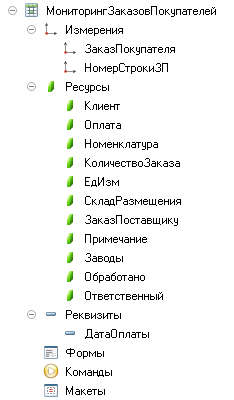 Обработку "МониторингЗаказовПокупателя" и регистр сведений, в котором будем хранить нужные данные для обработки.