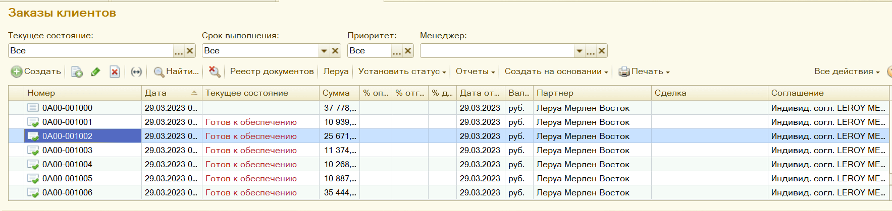 В ней мы получаем все заказы , которые прислала розничная сеть "Леруа Мерлен".