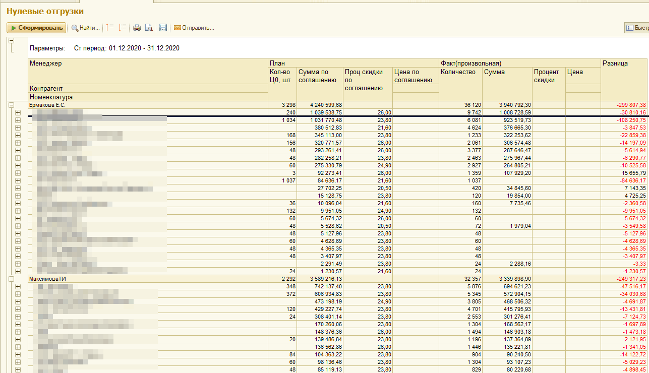 Он должен показывать где отличаются цены и/или скидки в реализации от цен и скидок, прописанных в соглашении с этим клиентом.