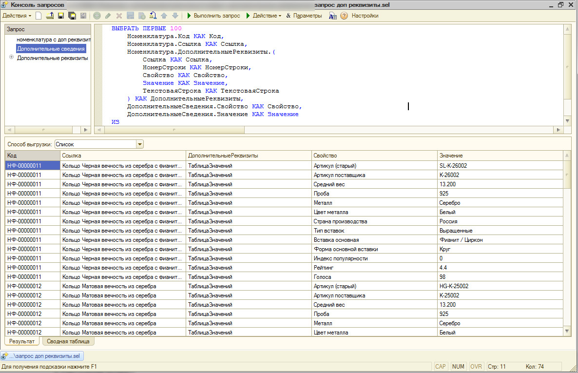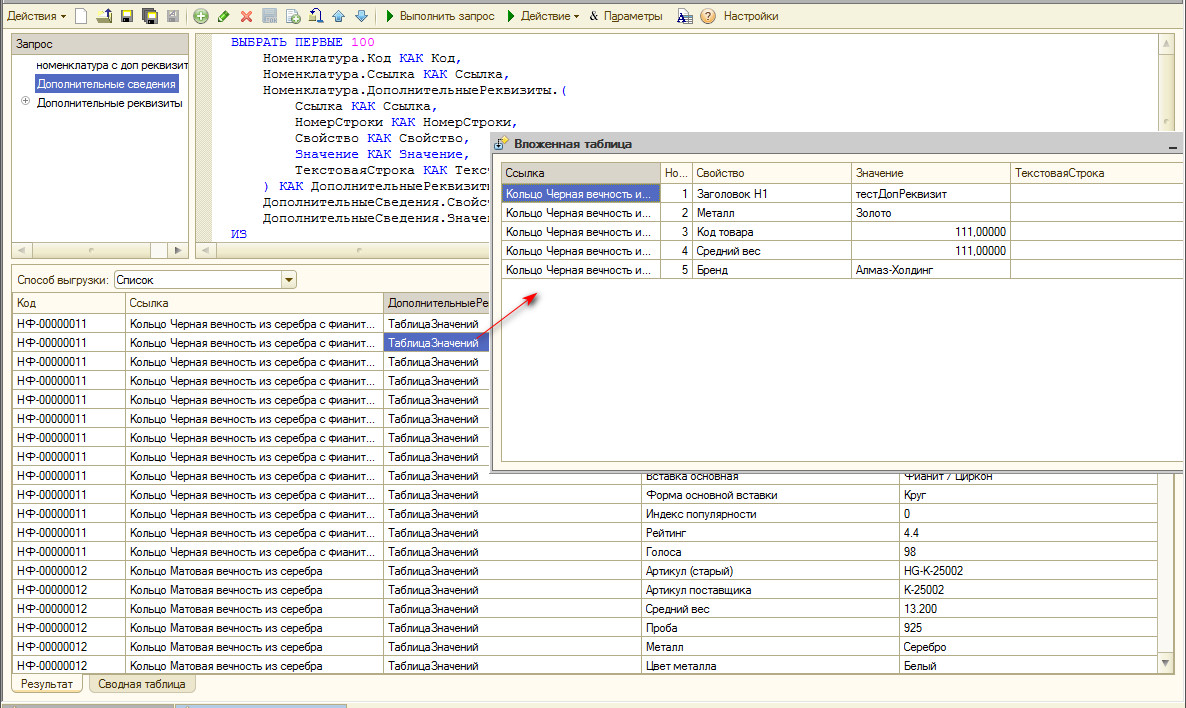 Скачать консоль запросов 8.2 с возможностью обработки результата запроса