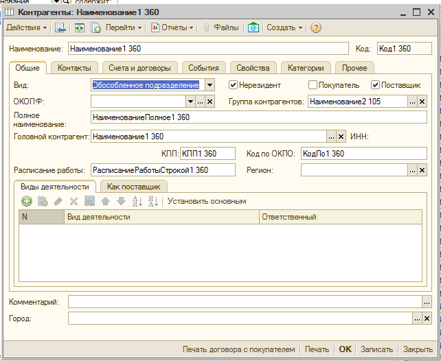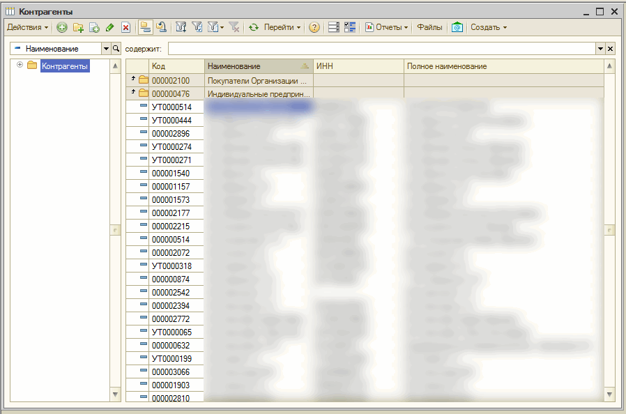 Справочники контрагенты и номенклатура до обезличивания:
