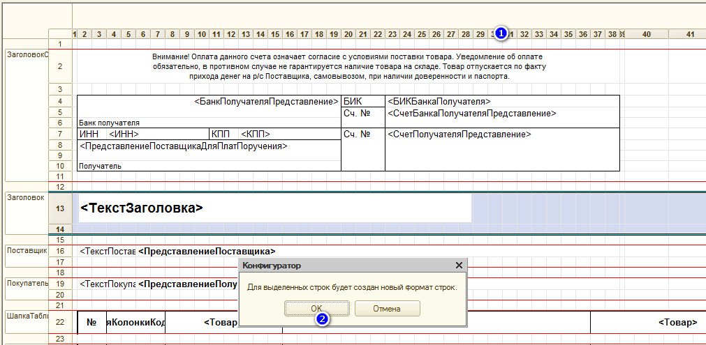 2 Платформа выдает предупреждение "Для выделенных строк будет создан новый формат строк". Жмем Ок.